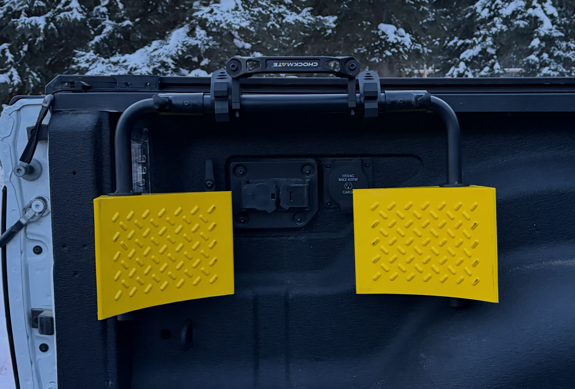 ChockMate is designed for light vehicles such as pickup trucks, service vehicles, and similar equipment commonly used on industrial and construction worksites. Each chock has a load rating of 5 ton.
